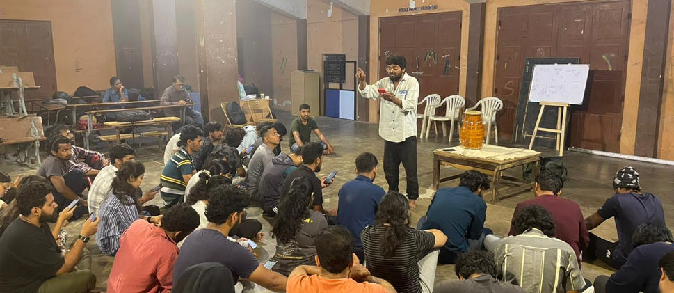Returning to theater music, Rajguru Sir explored the intricate relationship between music and acting, illustrating how the two are deeply connected on stage. He introduced the powerful song "Prana Vittala" from the play Theru, explaining its creative significance as an energizing opener. Participants also received a taste of the epic songs from Shastra Parva, each bringing vivid emotions and narratives to life through music.
